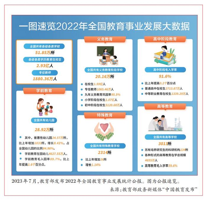 思想光芒照亮前程。党的十八大以来,在以习近平同志为核心的党中央坚强领导下,在习近平新时代中国特色社会主义思想特别是总书记关于教育的重要论述科学指引下,我国已建成世界上规模最大的教育体系,教育现代化发展总体水平跨入世界中上国家行列,教育普及水平实现历史性跨越,人民群众教育获得感不断增强。在《扎实推动教育强国建设》这篇重要文章中,总书记回顾新中国成立以来我国教育事业走过的非凡历程,高度肯定新时代教育事业取得历史性成就、发生格局性变化,指出:“这充分证明,中国特色社会主义教育发展道路是完全正确的。”