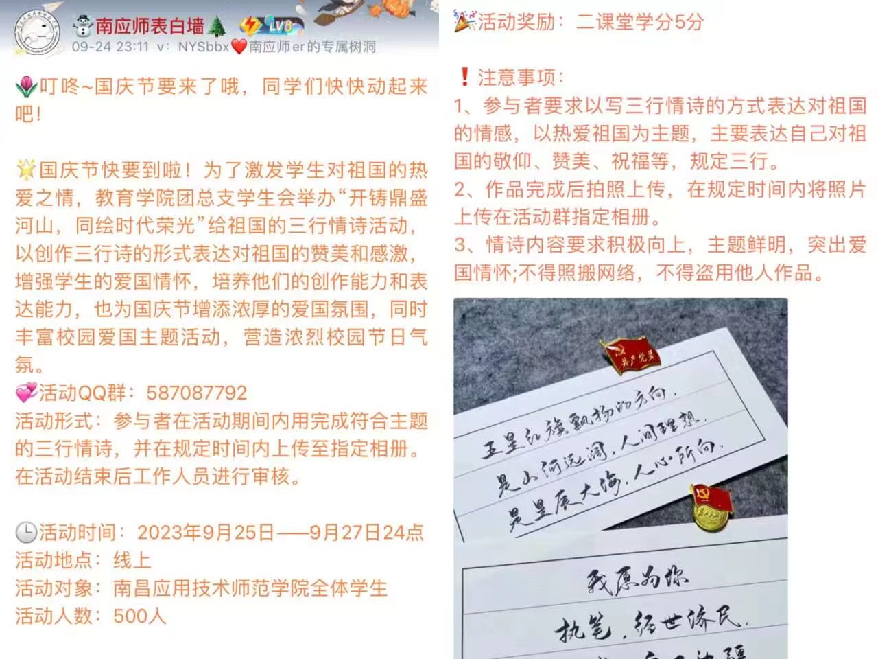 三行情诗献祖国——教育学院学生会国庆主题活动