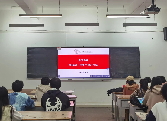 为引导2023级新生进一步增强校规校纪意识,自觉维护并遵守学校各项规章制度。2023年10月7-10日,教育学院分批组织2023级全体新生在教学楼进行《学生手册》考试,新生辅导员及其助理担任监考。