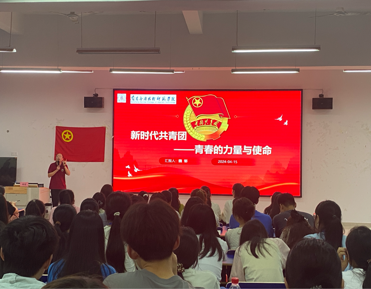 为深入学习贯彻习近平总书记关于青年工作的重要思想,全面落实团的十九大目标任务,进一步巩固和规范我院团员教育和培养团员意识,夯实我院共青团思想政治引领的工作机制,2024年4月15日晚上18:30,南昌应用技术师范学院教育学院于2311教室开展“青春力量,勇担使命”主题团课。本次团课由党总支书记魏郁主讲。