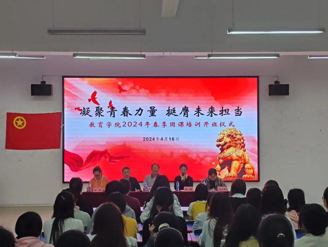 为进一步增强青年学生政治信念的坚定性、政治鉴别的敏锐性、政治忠诚的可靠性,培养出一批政治可靠、本领过硬、作风扎实、要求严格的具有代表性和模范作用的青年团员队伍,充分发挥共青团员在自我管理、自我教育、自我服务中的先锋模范作用。 2024年4月16日晚上18:30,南昌应用技术师范学院教育学院2024年春季团课培训开班仪式于2311教室举行。教育学院党总支书记魏郁,党总支副书记万程刚,学生科科长刘小灵,组织员刘芮及全体团支书参加此次开班仪式,开班仪式由教育学院团总支书记汪毓主持。