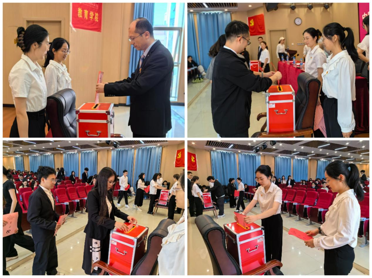 伴随着雄壮的《国际歌》,教育学院第一次党员大会胜利闭幕。会后,举行了第一次“两委”会议,选举了党委书记和纪委书记,大会依照上级指示完成了教育学院二级党委设置,学院党支部得到重新划分。全体会议结束后,教育学院各支部举行会议,讨论并选举了各支部支委成员,明确了新一届支部委员分工。