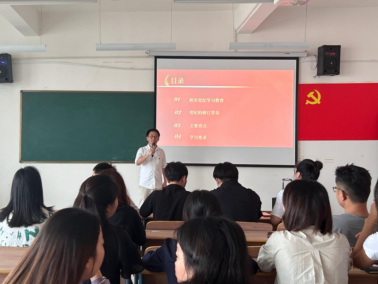 为有效深化《中国共产党纪律处分条例》学习认识和感悟,推动党规党纪潜移默化、浸润人心,引导广大党员干部严明纪律、担当作为。5月21日14时,教育学院第一党支部于3507教室开展党纪学习教育,由教育学院党委副书记、纪委书记万程刚讲解。