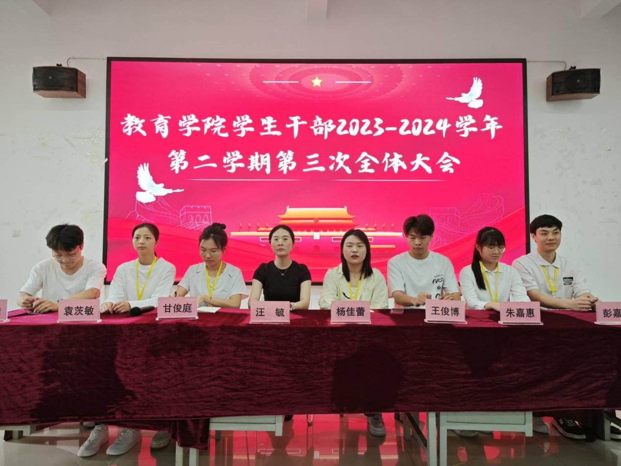 为切实加强学院学生干部队伍建设,提升学生干部的执行力,南昌应用技术师范学院教育学院于2024年5月22日在2311教室召开了教育学院学生干部全体大会。教育学院团总支书记汪毓及教育学院学生会全体学生干部出席了此次大会。