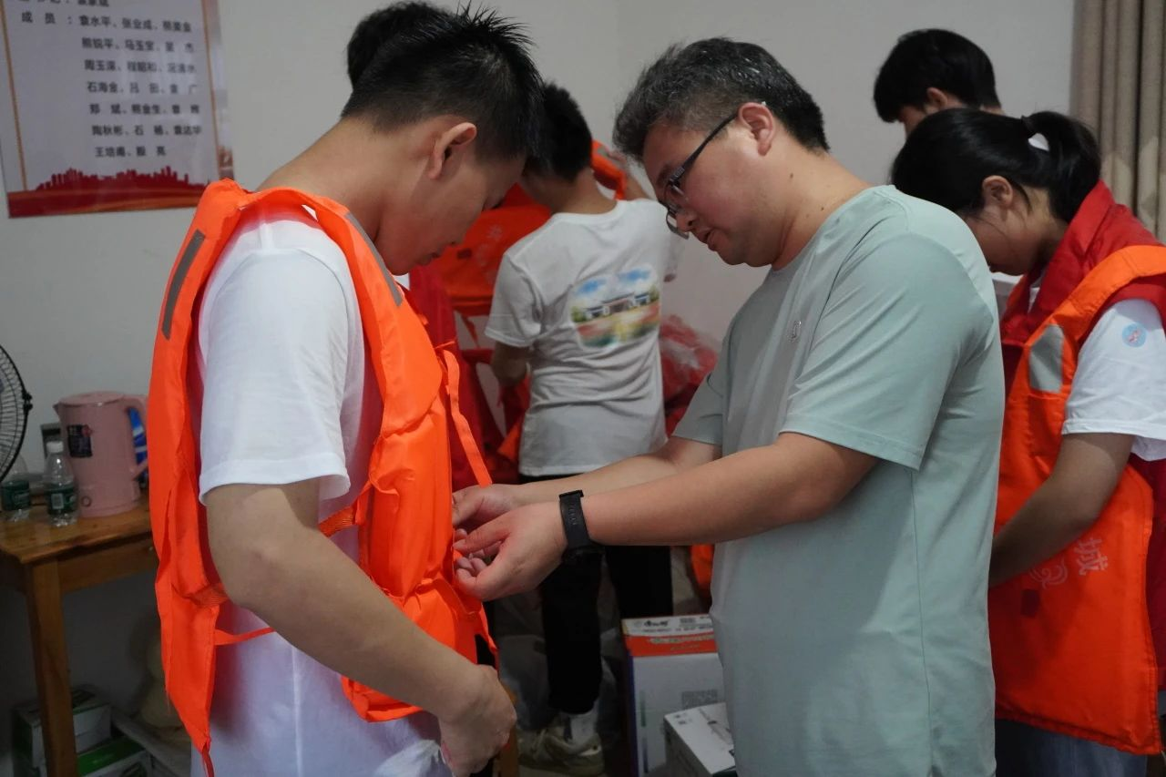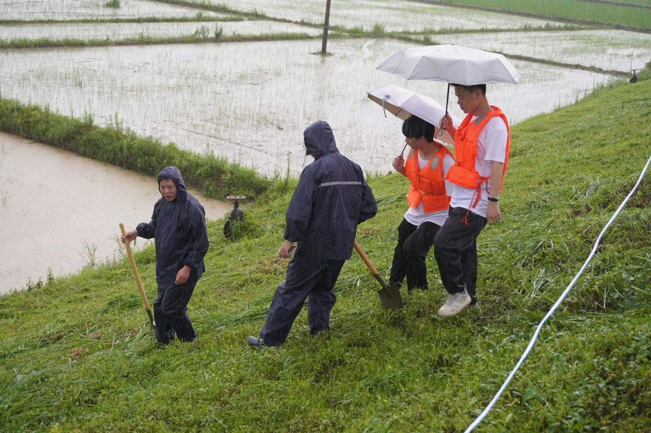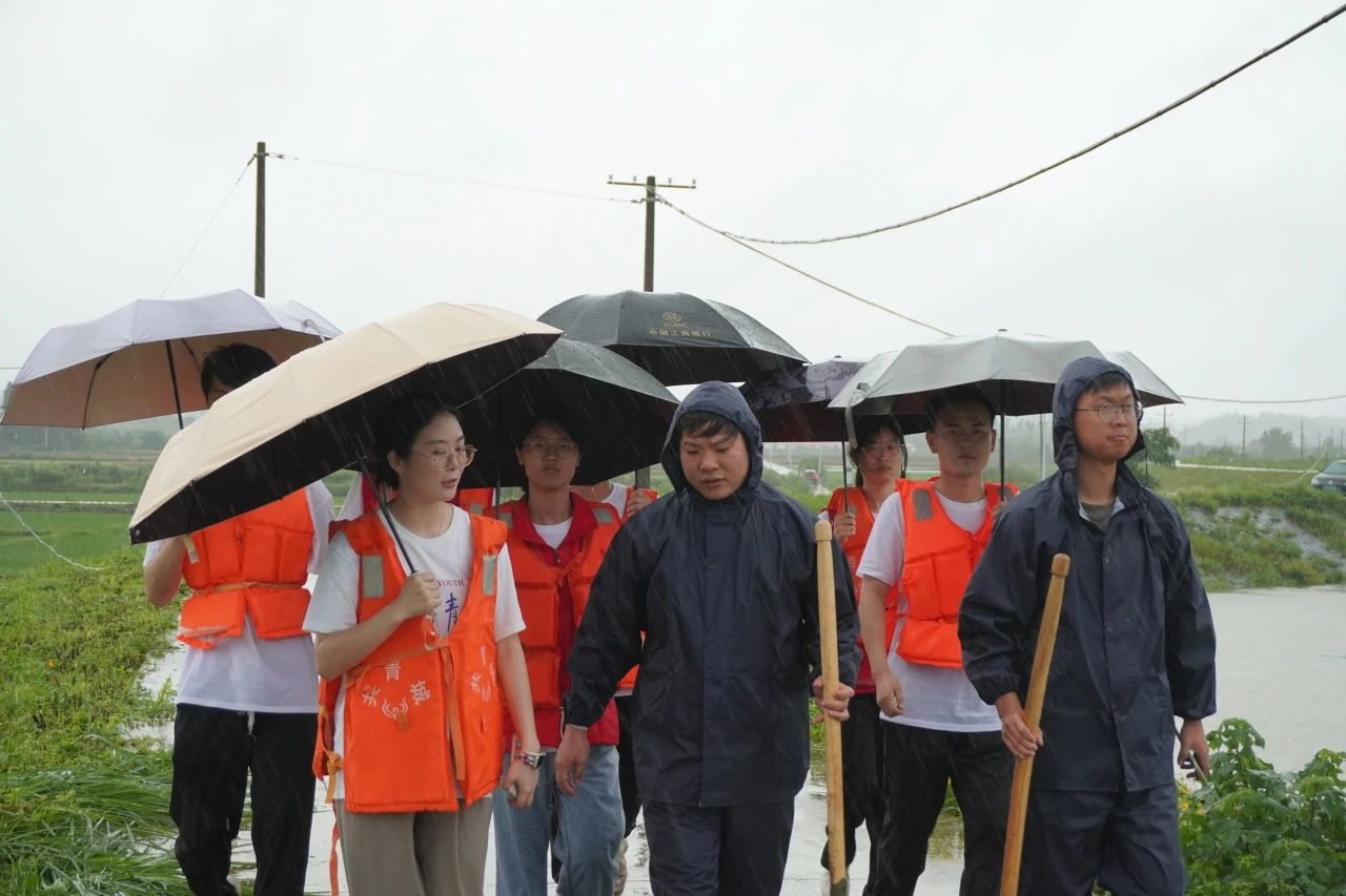 行知实践队员们心怀壮志,无惧风雨,以坚定的信念和昂扬的斗志投入到防汛的战斗中。在泽泉乡杭州圩防汛抢险临时党支部书记熊彬的带领下,行知实践队员们穿上了救生衣,针对山塘水库、高陡边坡、山洪风险区等地质灾害隐患点进行排查,坚守堤坝查险情。同时,为保障群众出行安全,队员们还对辖区内重点防汛区域开展隐患大排查、设立警示标志,他们用实际行动诠释着新时代青年的责任和担当,为群众当好风雨“守护人”。