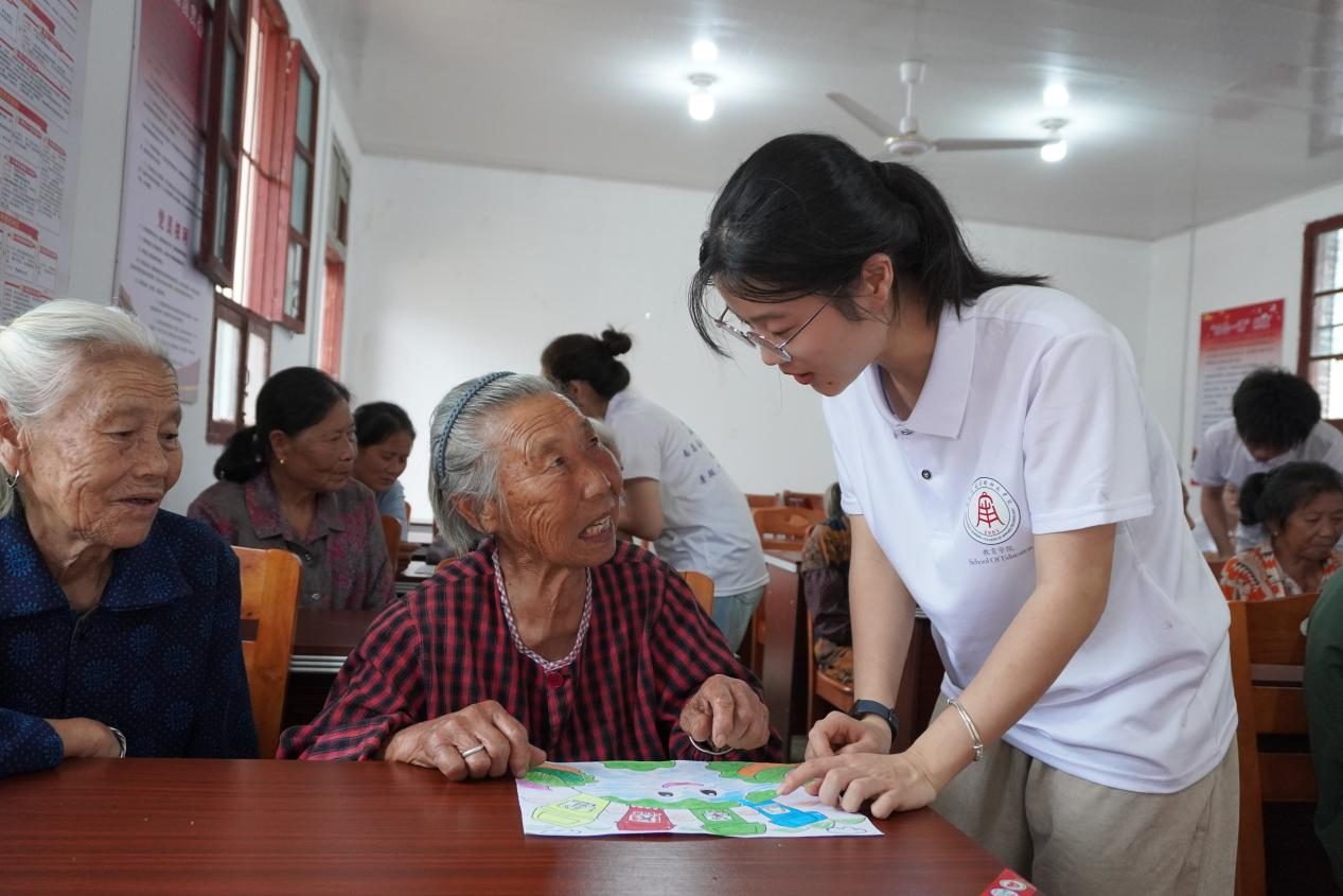 在国渡村,行知实践队开展一场独具特色的垃圾分类科普小课堂,通过绘画“可回收垃圾”“其他垃圾”“厨余垃圾”以及“有害垃圾”等方面生动形象地讲解了垃圾分类,低碳出行的相关知识。活动还特别设计了互动环节,邀请村民参与垃圾分类的游戏,并进行了垃圾分类小知识抢答,通过这样的互动式小课堂宣讲,增强了当地村民对垃圾分类的兴趣和效果,增强了他们的环保意识和社会责任感。