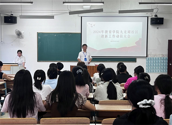 为保证新学期迎新志愿服务工作有序开展,动员广大学生志愿者以高度饱满的精神状态投入到火热的迎新工作中,南昌应用技术师范学院教育学院于8月29日18时组织开展“2024年教育学院迎新工作动员大会”。本次大会由教育学院党委副书记、纪委书记万程刚及全体迎新志愿者参会。