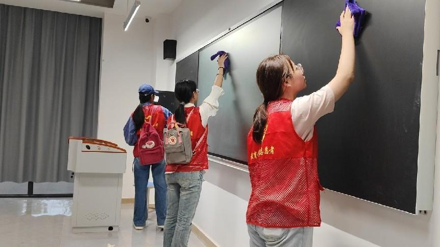 大扫除的过程中,志愿者们展现出积极向上的精神状态。整个过程细致入微,从讲台到课桌椅,从黑板到墙面,不放过任何一个角落,针对每一处卫生细节及易被忽视的死角都进行全面清扫。