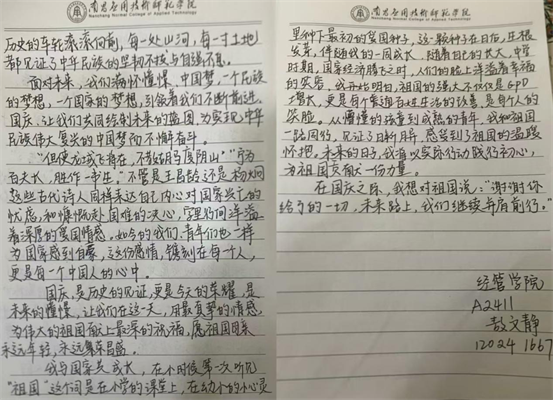 本次活动不仅可以锻炼自身的写作能力,培养同学们的文学素养,也更是宣扬爱国主义的媒介。通过这次活动,同学们以笔为媒,抒发了对祖国的热爱,增强了节日使命感,也同时激发了同学们的爱国主义精神。相信在今后的日子里,同学们一定能将爱国主义牢记于心,共同为建设新时代社会主义文化强国而不懈奋斗!(文/罗意、图/教育学院、审核/魏郁)