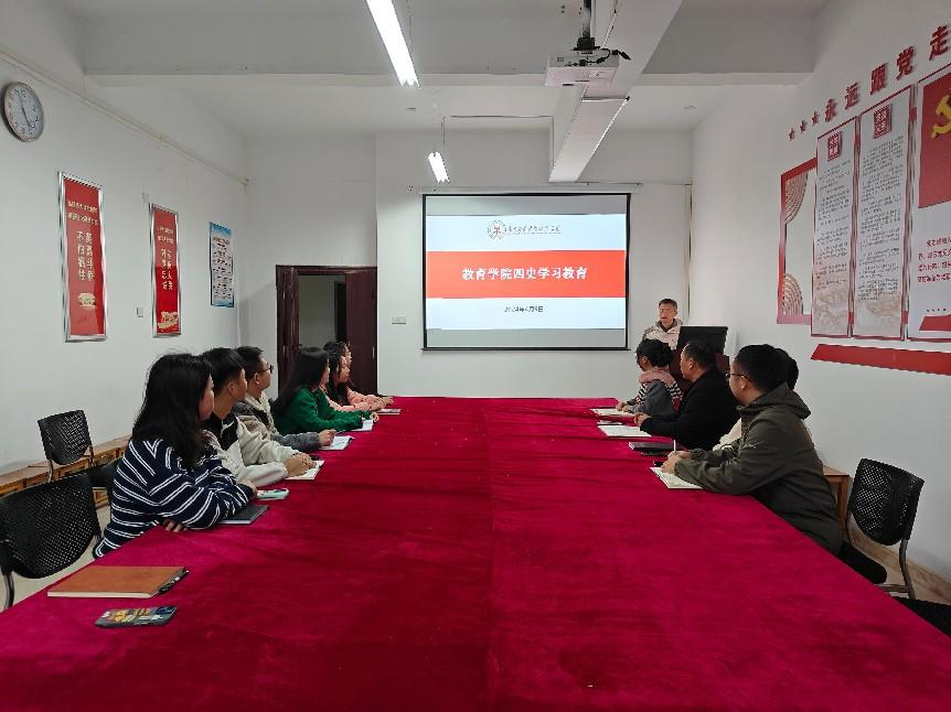 "以史为鉴,可以知兴替"。为引导教育学院全体党员干部深入学习党史、新中国史、改革开放史、社会主义发展史,扎实开展“四史”学习教育,积极响应党的二十届三中全会精神,强化党纪国法意识,教育学院于4月9日在1307会议室召开了“四史”学习专题会议。本次会议由教育学院党总支副书记万程刚主持。