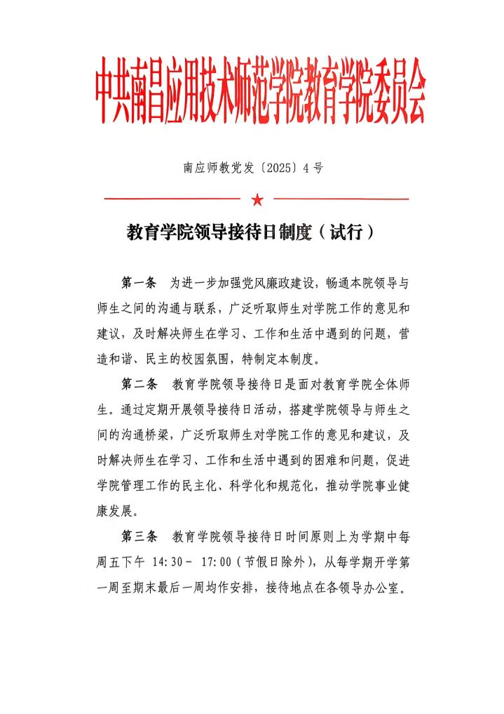 首页栏目 综合新闻 通知公告 学生工作 先进典型 先进典型 专题专栏 您现在的位置是:首页 > 首页栏目 > 通知公告 教育学院领导接待日制度(试行) 管理员2025-09-04526 附件: 教育学院领导接待日制度(试行) 上一篇 教育学院关于 2024-2025 学年“优秀教师、优秀教育工作者”拟推荐人选的公示 下一篇 教育学院关于2024-2025学年度国家励志奖学金的公示