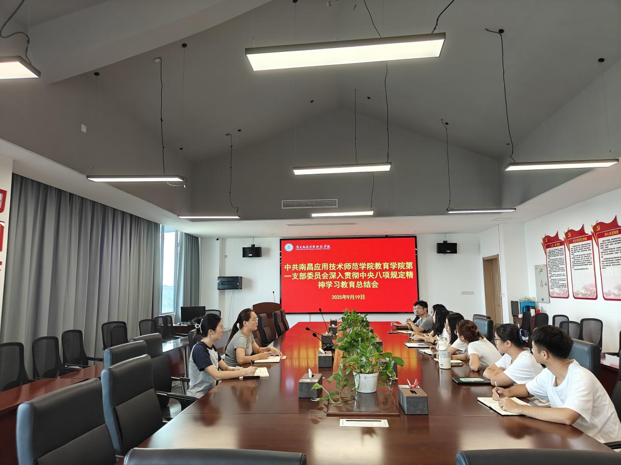 为全面落实新时代党的建设总要求,持续强化纪律和作风建设,中共南昌应用技术师范学院教育学院第一党支部于9月19日召开深入贯彻中央八项规定精神学习教育总结会。会议由党支部副书记刘芮主持,全体党员参会。