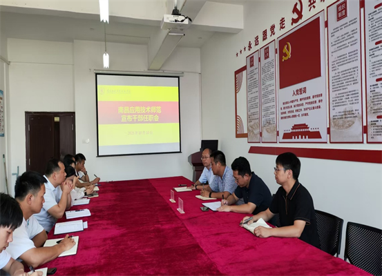 2025年10月10日上午,在1307会议室召开南昌应用技术师范学院宣布干部任职会,宣布林耿同志的任职决定。副校长兼教育学院院长郑行忠、校纪委书记兼党委组织部部长、教育学院书记魏郁,教育学院九龙湖校区全体辅导员出席。