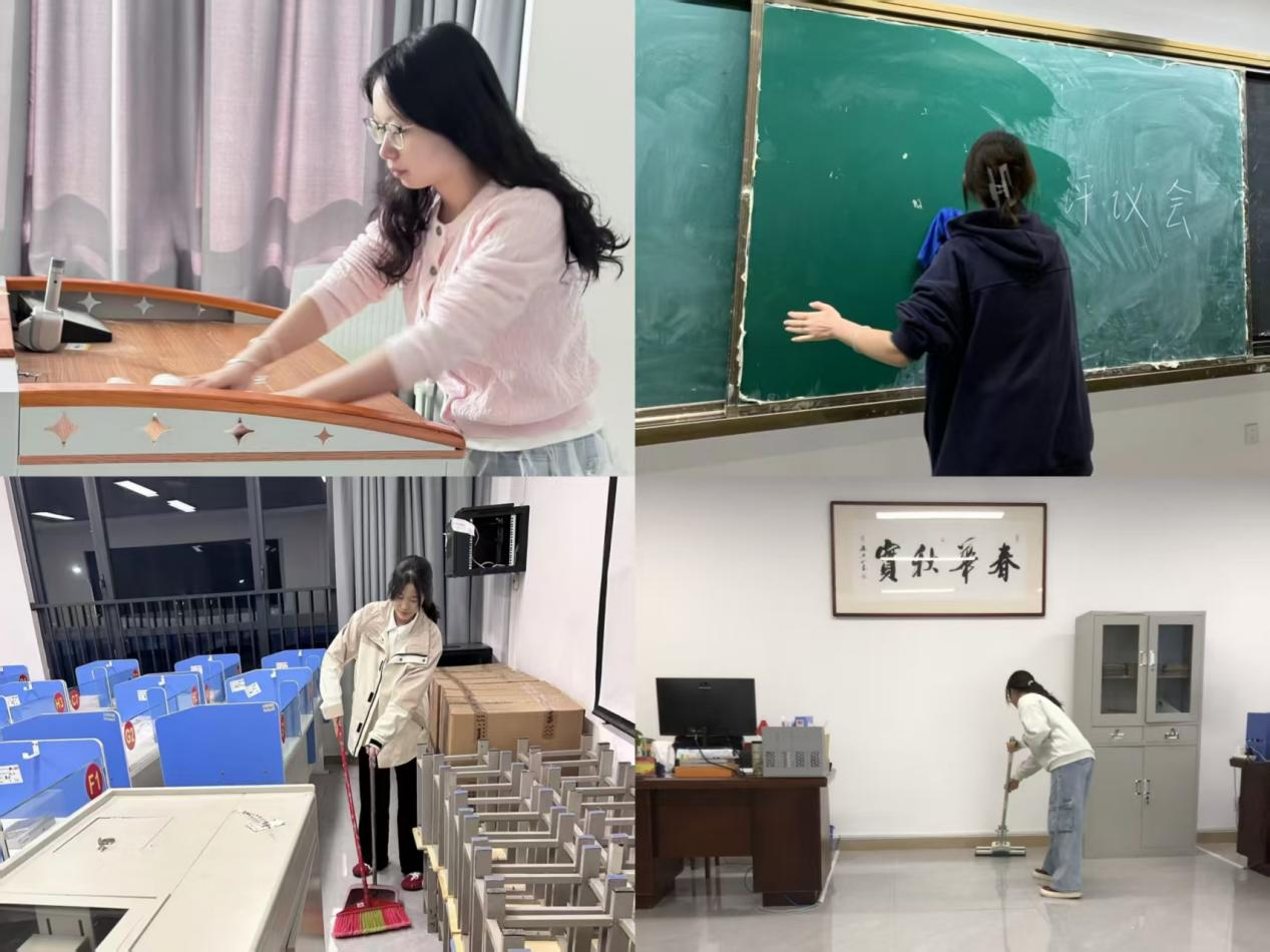 活动中,学院全体党员和积极分子准时抵达集合地点,统一领取清洁工具,有序前往沁苑片区各指定区域开展服务。大家细致擦拭公共设施扶手与台面,规整归置散落的座椅杂物,耐心清扫地面缝隙碎屑,确保卫生不留死角。饱满的热情贯穿始终,团结协作显著提升了效率,原本略显杂乱的区域逐渐变得清爽有序,校园环境在众人共同努力下焕然一新。秋光正好,一道道忙碌的“红色身影”穿梭在校园之中,与静谧的秋景交织在一起,展现出党员志愿者踏实肯干、服务校园的动人画面。