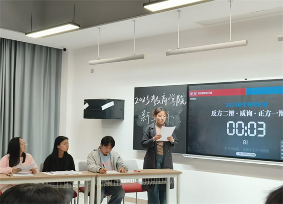 思想在交锋中闪光,观点在辩论中明晰。为锻炼学生的逻辑思辨与语言表达能力,同时丰富学院学术文化生活,教育学院于10月30日在沁苑十实302举办2025年新生杯辩论赛。本次辩论赛以“爱与被爱谁更幸福”为核心辩题,旨在打破对“幸福”的单一认知,通过正反方的观点交锋,激发学生对情感体验的多维思考。这一贴近生活的议题,既承载着锻炼综合能力的目的,更希望引导大家在思辨中探寻幸福的本质,让辩论成为传递温暖思考的桥梁。
