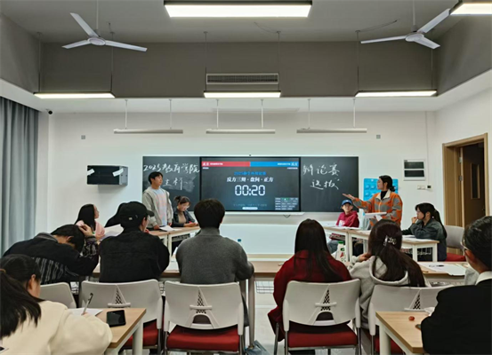 辩手们时而快速翻阅赛前准备的资料寻找支撑,时而用即兴的反问打乱对方节奏,赛场内只剩下清晰有力的论证声与计时器的滴答声,每个观点的碰撞都像一场没有硝烟的“战斗”,紧张得让人不敢错过任何一个细节。精彩陈词后短暂的静默,以及被巧妙反驳时不由自主的惊叹,都彰显着这场辩论的激烈程度与思想深度。双方在立论、攻辩、自由辩论环节逻辑严谨、反应敏捷,展现了扎实的思辨能力。