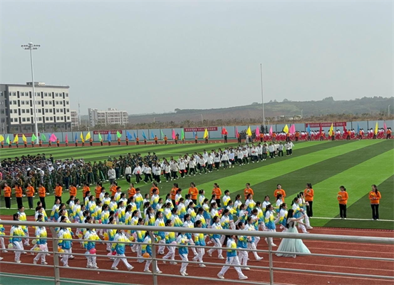 开幕式在激昂的旋律中启幕。国旗护卫队庄严入场,彩旗方阵五彩斑斓,瞬间点燃了现场的热烈的氛围。
