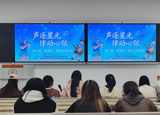 为丰富校园文化生活,提升学生的艺术素养与审美情趣,营造积极向上的文化氛围,南昌应用技术师范学院教育学院于11月11日在沁苑二教A409教室成功举办了"声逐星光,律动心弦″第三届“青春杯”歌唱大赛初赛。本次大赛旨在为热爱歌唱的学子们提供一个展示才华、交流心得的舞台。