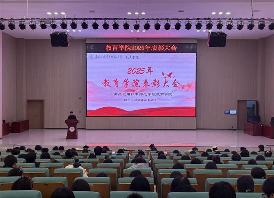 旗帜引领方向,榜样凝聚力量。南昌应用技术师范学院教育学院于2025年12月25日在图书馆学术报告厅隆重举行“榜样领航,行知致远”教育学院2025年表彰大会。大会全面回顾总结了过去一学期学院的工作,表彰了过去一年助力学院发展的教育学院师生。出席本次会议的有:南昌应用技术师范学院教育学院党委书记魏郁、团委书记汪毓、组织员刘芮、学生科科长刘小灵以及教育学院部分辅导员代表。