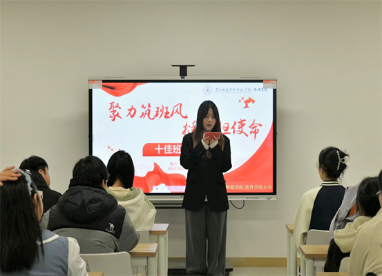 为树立基层班级榜样典型,搭建班级管理经验共享平台,南昌应用技术师范学院教育学院于2025年12月10日在沁苑十实508教室成功举办“聚力筑班风,挺膺担使命”十佳班长大赛。
