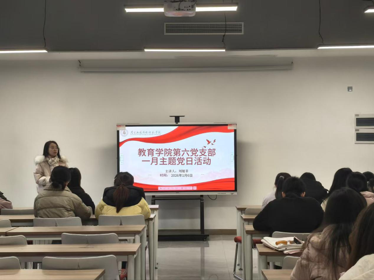 岁序更替,华章日新。2026年1月6日,教育学院第六党支部以“砥砺初心启新程,学思践悟担使命”为主题开展党日活动,推动理论学习与党性实践深度融合。活动由党支部书记刘娅菲主持,全体党员参与学习交流。