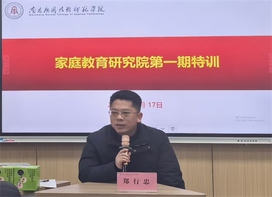 3月17日,家庭教育研究院组织召开首期研究员特训。副校长兼教育学院院长郑行忠出席并讲话。