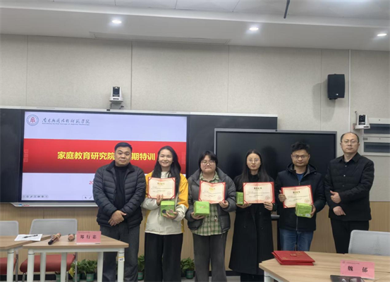 培训开展前,学校统战部部长叶海涛和教育学院党委书记魏郁共同为2026寒假短视频优秀作品奖获得者颁发荣誉证书与奖品,并为新加入的家庭教育研究员颁发聘书。