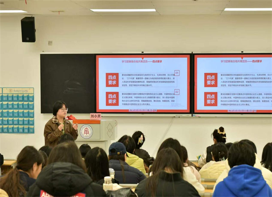 为深入学习贯彻习近平新时代中国特色社会主义思想,引导广大团员青年坚定理想信念、勇担时代使命,南昌应用技术师范学院教育学院于2026年3月26日开展“青春心向党·奋进新征程”主题团课。本次团课由学生科科长刘小灵老师主讲,学院各年级团员代表参加学习。