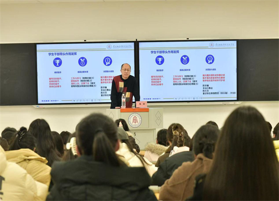 活动中,魏郁书记结合自身工作经历与青年成长规律,从入党申请流程、学生骨干作用发挥、大学生就业路径及人工智能工具的合理运用等方面展开讲解。他详细梳理了从提交入党申请书到成为入党积极分子、发展对象、预备党员及正式党员的全过程,帮助同学们清晰认识入党程序与标准;同时结合学生干部队伍建设,强调学生干部应在思想引领、组织凝聚、服务同学中发挥桥梁纽带作用。在就业方面,他重点解读了“六路通达”的就业路径选择,鼓励同学们拓宽视野、多元发展。针对数字化时代的新变化,他还就如何借助AI工具提升学习效率、优化工作方法进行案例分享,引导同学们在技术赋能中保持清醒、守正创新。