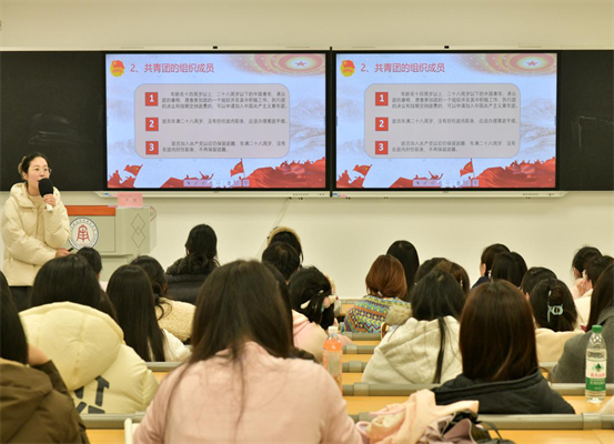 活动现场,汪毓老师以生动的语言,围绕共青团的组织成员、发展历程等核心内容展开讲解。从入团年龄要求、入团手续办理,到团员入党后的团籍保留规则,一步步拆解共青团组织的核心要点,帮助同学们系统掌握团的基础知识,深刻理解共青团作为党的助手和后备军的使命与担当。