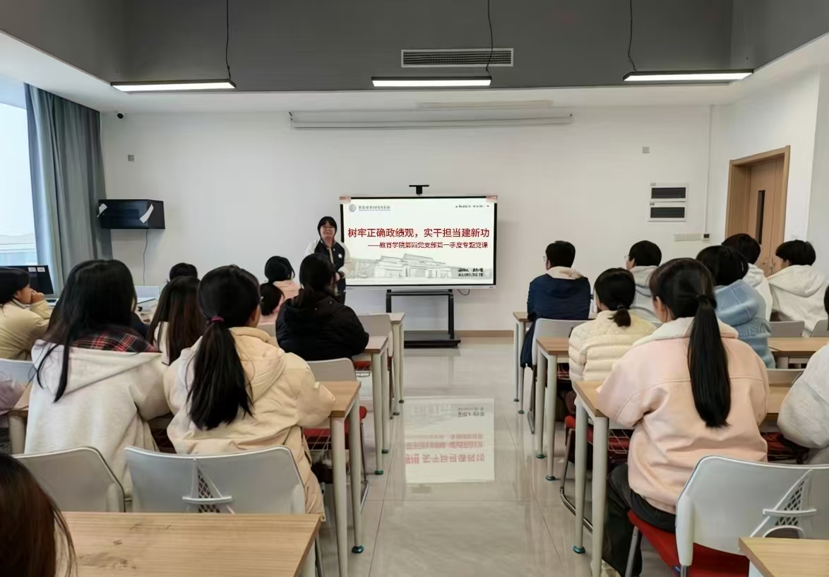 为树牢党员干部正确政绩观,夯实干事创业思想根基,3月17日,教育学院第四党支部开展第一季度专题党课,由刘小灵主讲,支部全体党员参加学习。