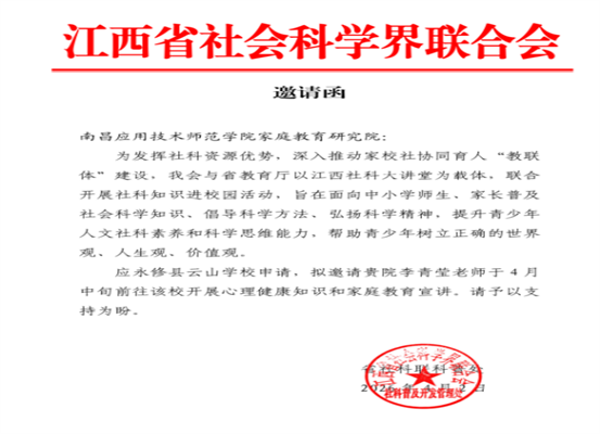 为深入推进社科知识普及,破解青春期家庭教育痛点,助力青少年健康成长,4月15日,“江西社科大讲堂”社科知识进校园活动在永修县云山学校顺利举办。南昌应用技术师范学院家庭教育研究院李菁莹院长受邀开展专题宣讲,为该校初中生家长送上了一场干货满满的家庭教育指导盛宴。