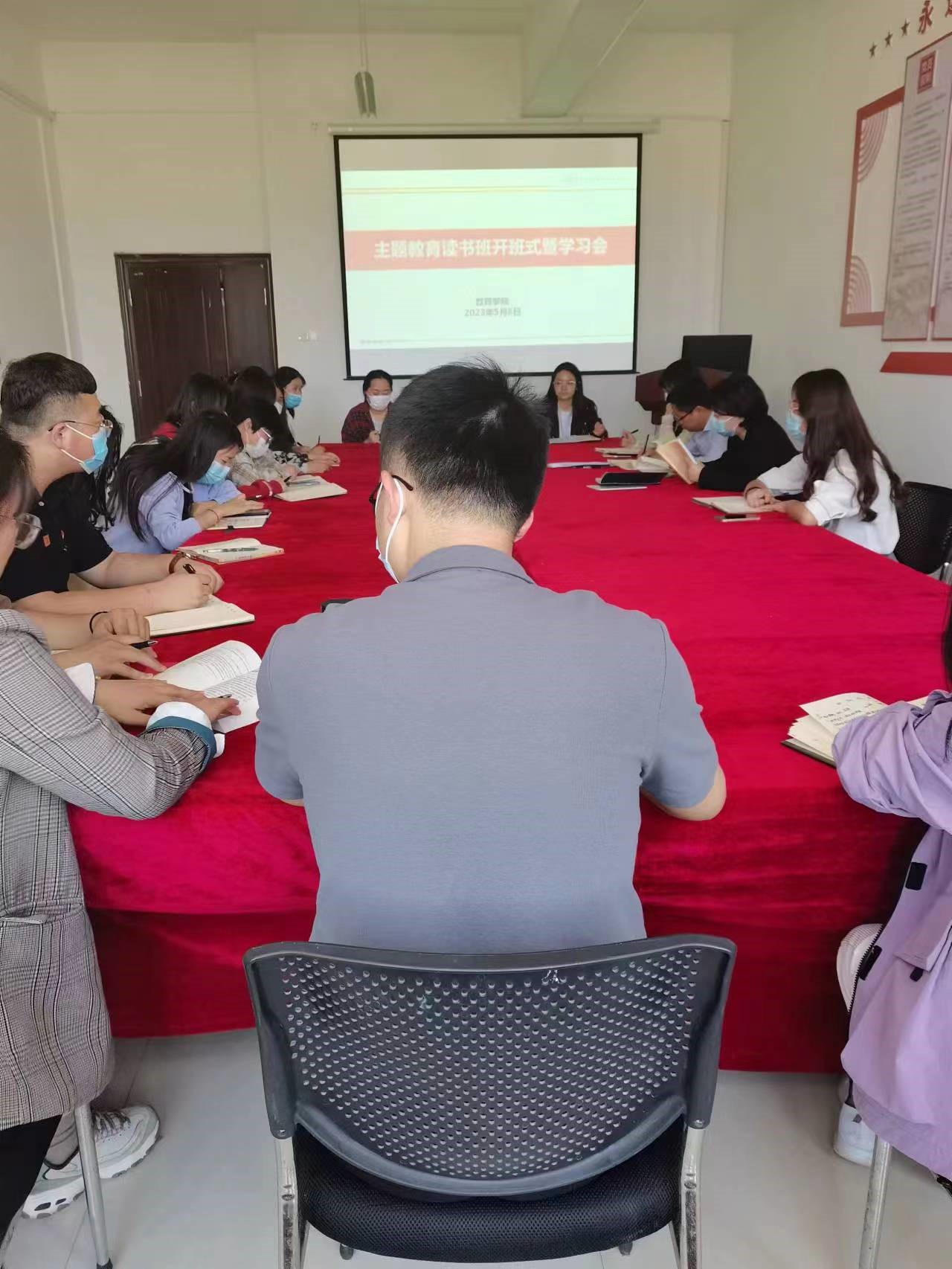 5月8日,教育学院开展学习贯彻习近平新时代中国特色社会主义思想主题教育读书班开班式暨学习会在1307会议室举行。学院党总支朱蕾、执行副院长林远健、副书记宗天怡、副院长张丽芳及第一党支部党员参会。